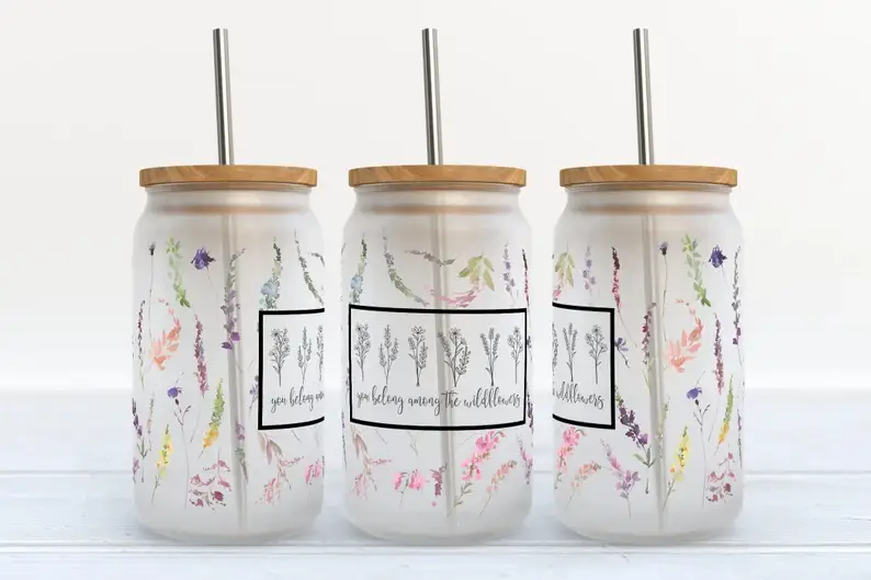 Gobelet en verre dépoli 16oz Fleurs de printemps en vente B2B