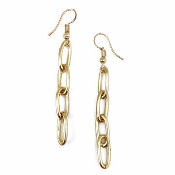 Boucles d'oreilles à maillons en or brossé Signature 2 po de longueur Fait main, plaqué or