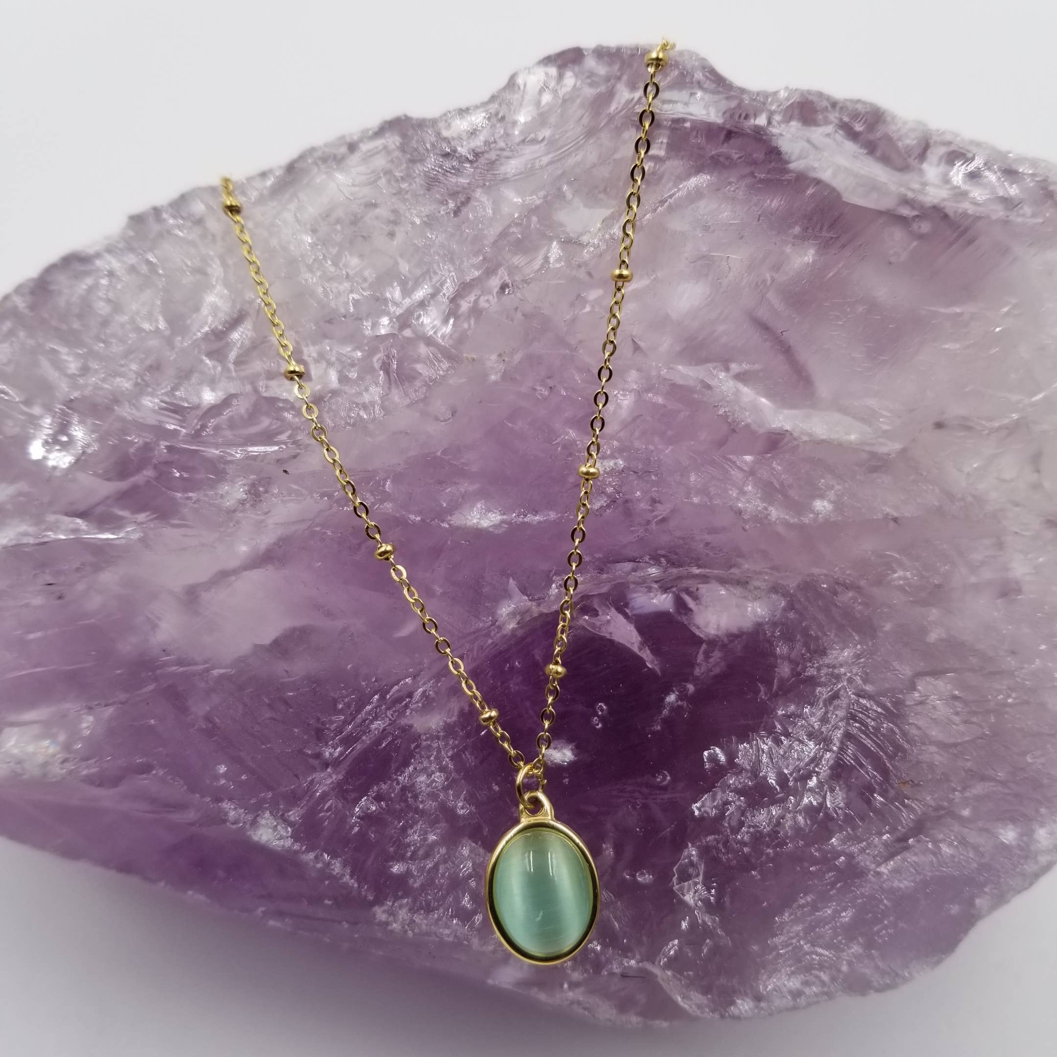 Collier chaîne avec pendentif pierre verte résistante au ternissement en vente B2B