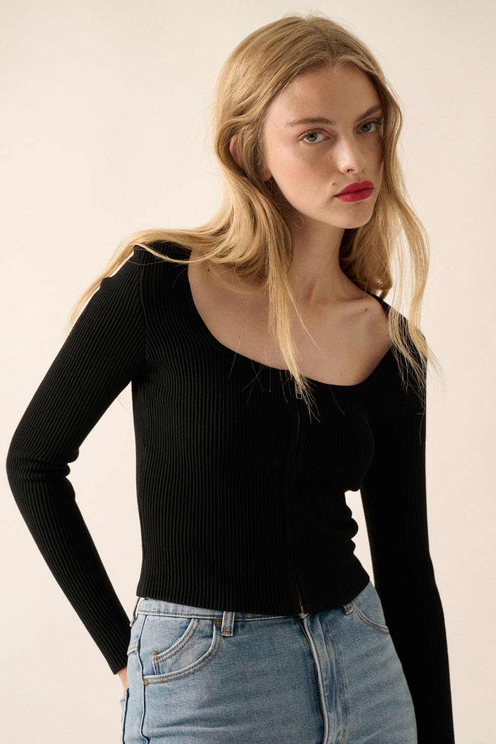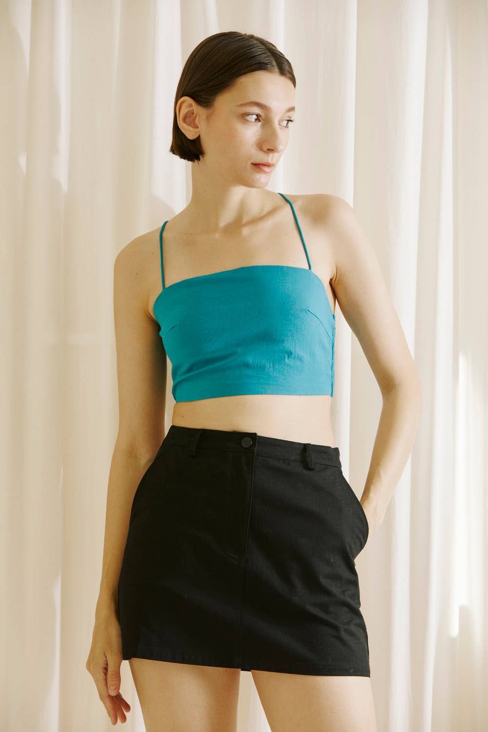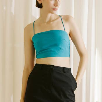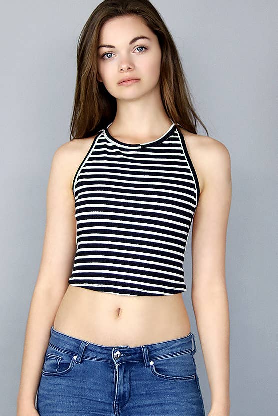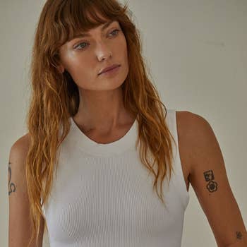 Camisole côtelée avec mini bordure rose en v Sécher au sèche-linge ou sécher à plat Le mannequin mesure 5'8" et porte un Small