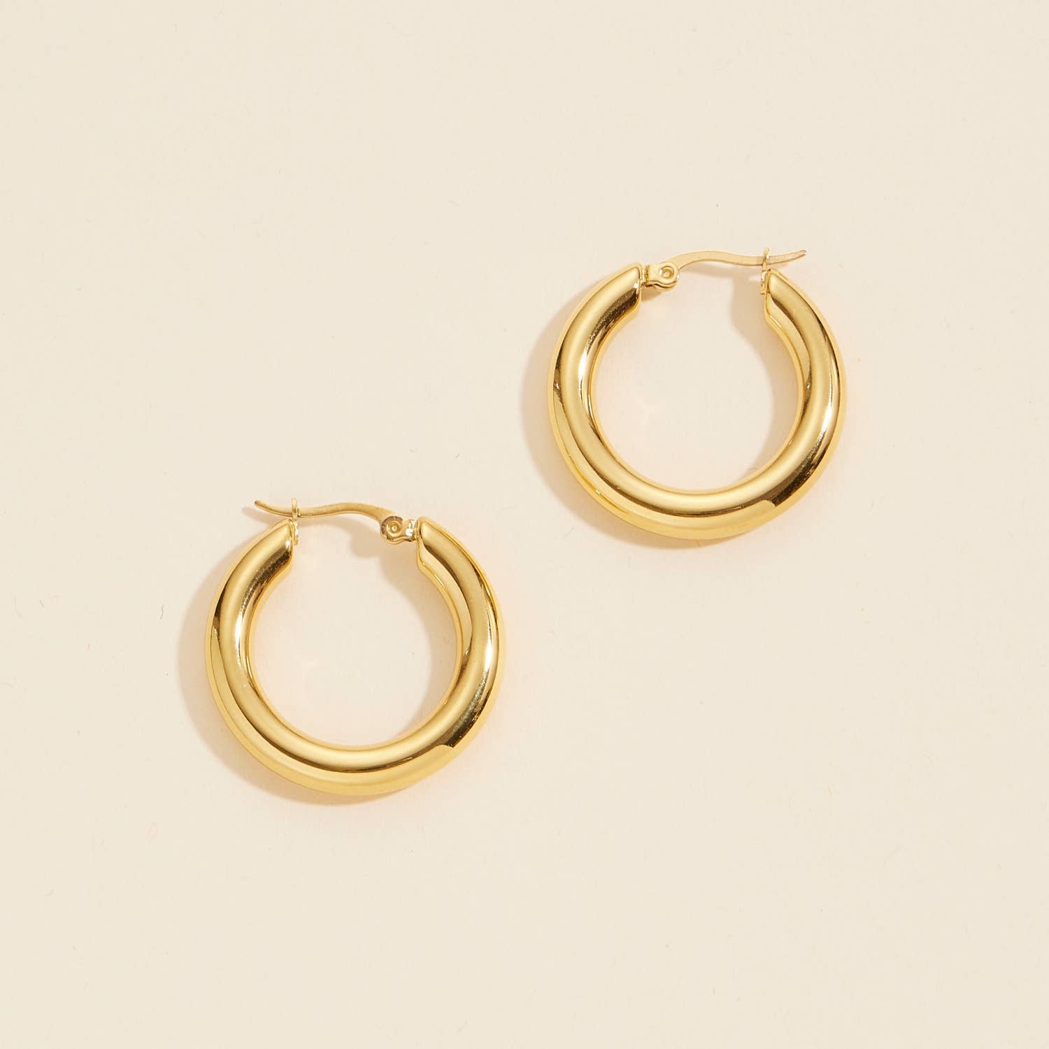 Rempli en or 18 carats Mode et minimalisme Chunky Jumbo Matériau en cuivre Taille de la boucle d'oreille 2,3 cm Épaisseur 0,4 cm