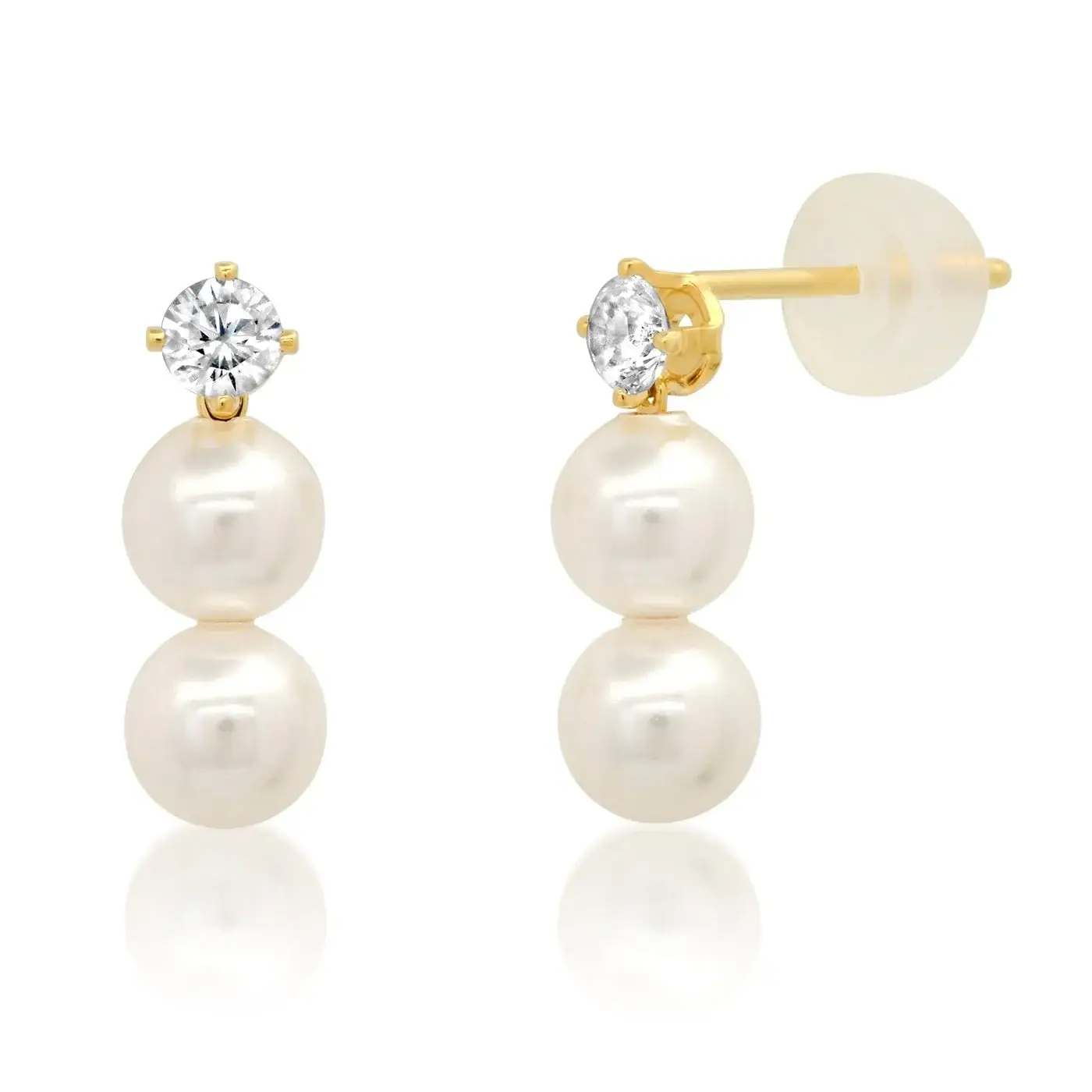 Boucles d’oreilles pendantes perle CZ en or, bijoux de mariage, Réf. ZX100 en vente B2B