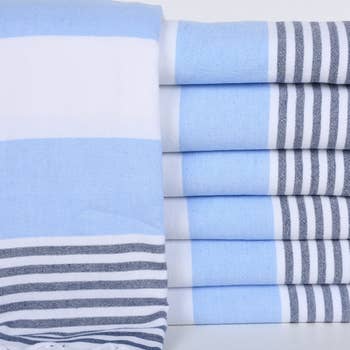 Lot de 10 serviettes de plage EBRU Home en coton turc multicolores, sans sable, motif rayures cabana