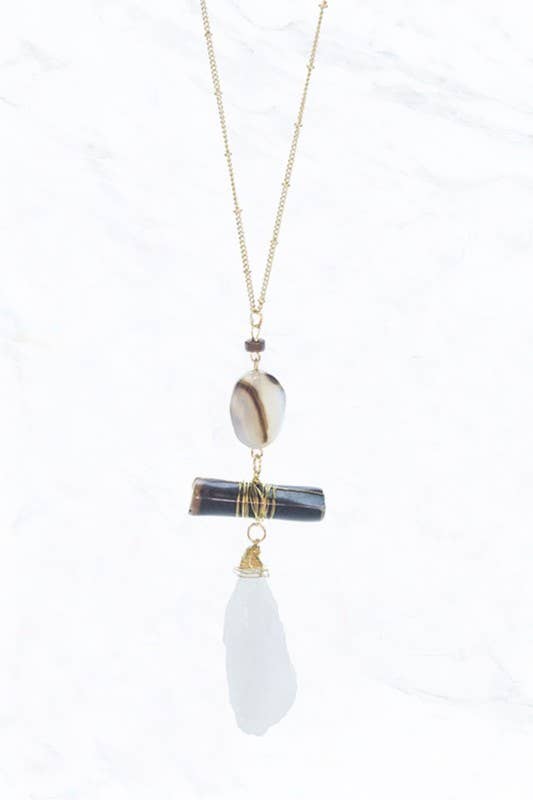 Lot de 24 colliers comprenant une chaîne en laiton plaqué or de 40,6 cm (16 pouces) avec rallonge de 5 cm (2 pouces) et diverses petites pierres semi-précieuses. Chaque collier est vendu à 5 $ et le lot ne comprend pas de présentoir.