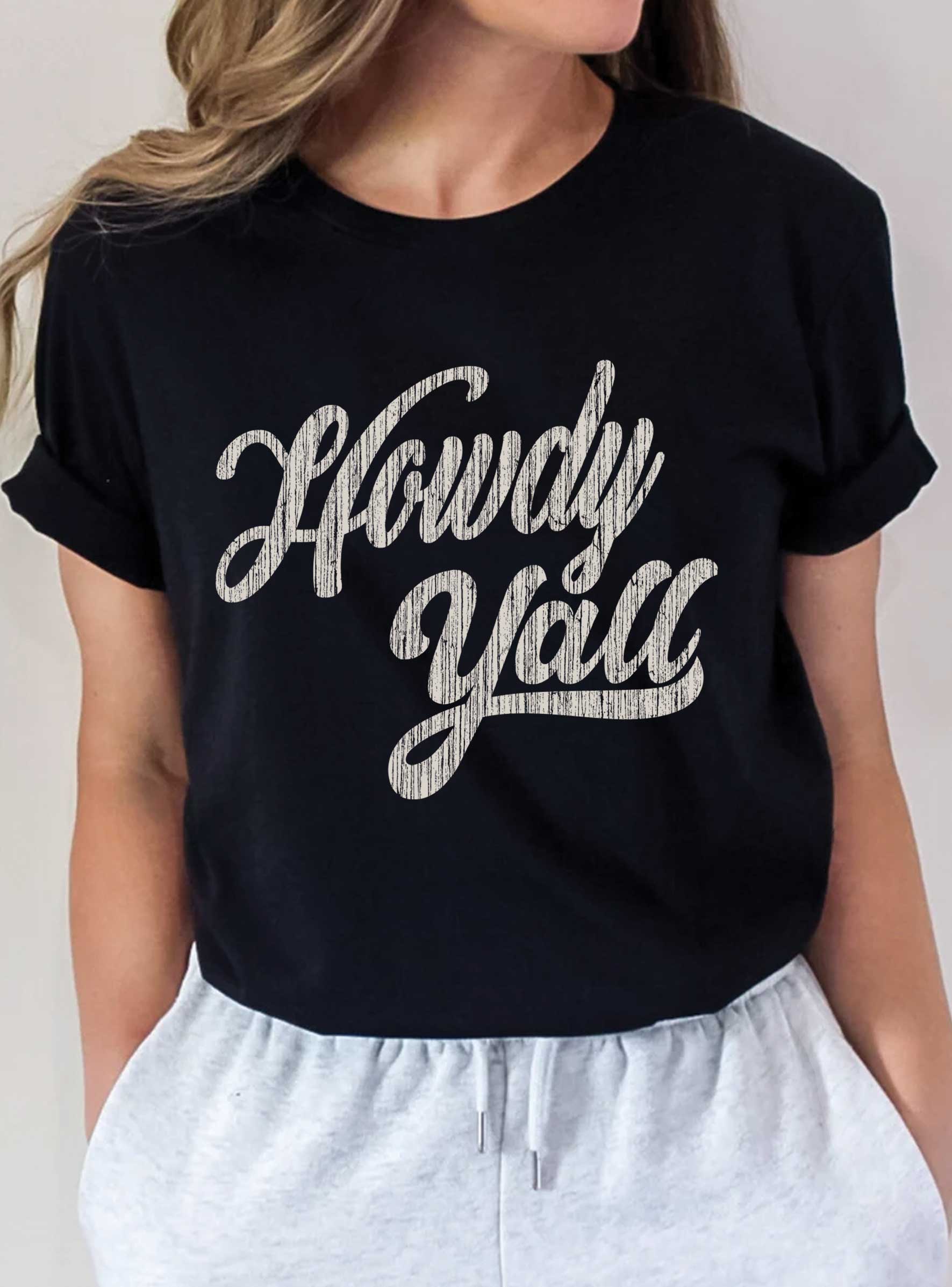 Le T-shirt "Howdy with Bow" Western est une pièce amusante et élégante qui combine le charme classique de l'Ouest avec une touche de féminité. Le t-shirt arbore le mot "Howdy", une salutation amicale et emblématique souvent associée à la culture cowboy et western. Pour ajouter une touche féminine et ludique, le design est complété par un joli graphique de nœud, lui conférant une allure douce et stylée. Veuillez noter qu'en raison du processus d'impression par sublimation, les couleurs du produit peuvent ne pas apparaître aussi vives ou fidèles que la représentation numérique. Les couleurs peuvent sembler un peu plus douces ou atténuées en personne par rapport à ce qui est vu à l'écran. Nous vous remercions de votre compréhension et espérons que vous aimerez votre produit personnalisé !