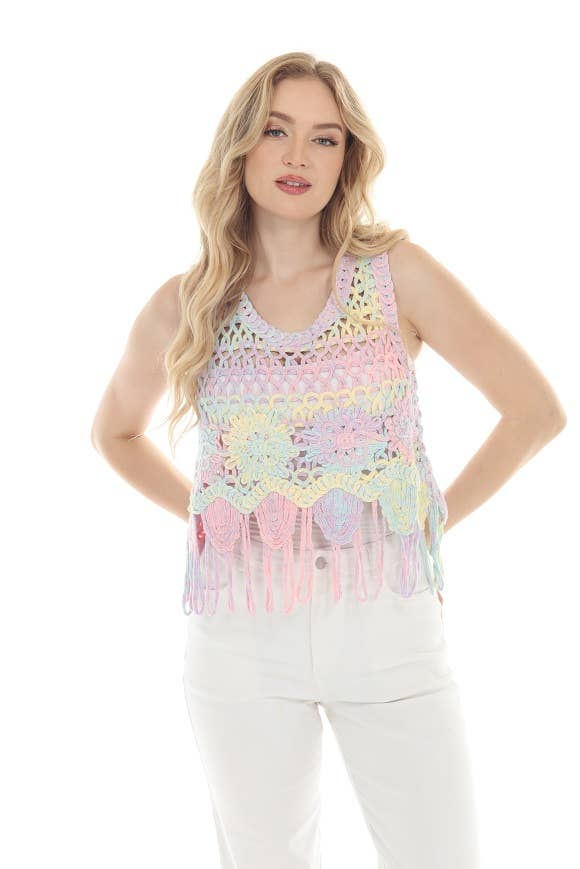 Débardeur doux et décontracté avec ourlet en dentelle florale délicate - T08 IV-TURQ en vente B2B