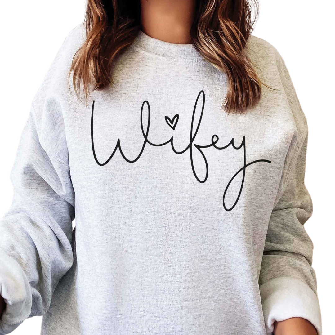 Sweatshirt graphique WIFEY - 8 oz, 50/50 coton/polyester de qualité supérieure - Fil à jet d'air pour un toucher plus doux et une réduction du boulochage - Coupe classique - Tailles unisexes