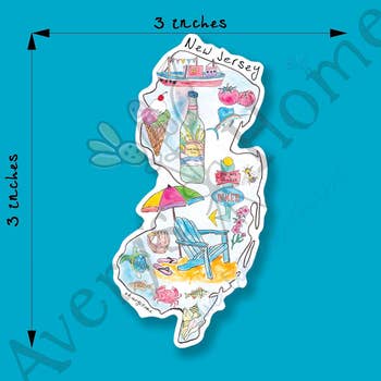 Profitez du New Jersey avec un original d'AbstractbyRabrams dans l'État. À propos de l'autocollant : - Conçu par Rachel Abrams, propriétaire d'AbstractbyRabrams - 3x2" - Imprimé dans le New Jersey - Laminé mat - Résistant au lave-vaisselle et au micro-ondes, et peut être appliqué sur des contenants alimentaires sûrs. - Ils sont résistants aux intempéries et à l'eau, mais ne peuvent pas rester immergés dans l'eau (comme au fond d'un bateau). - L'autocollant est livré en vrac. Si vous êtes intéressé par des emballages individuels en cellophane compostables commercialement, veuillez nous contacter.