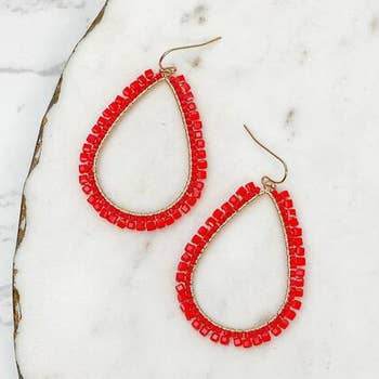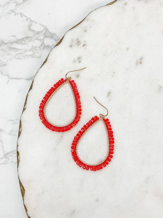 Boucle d'oreille Game Day avec perle en forme de graine en rouge et gris