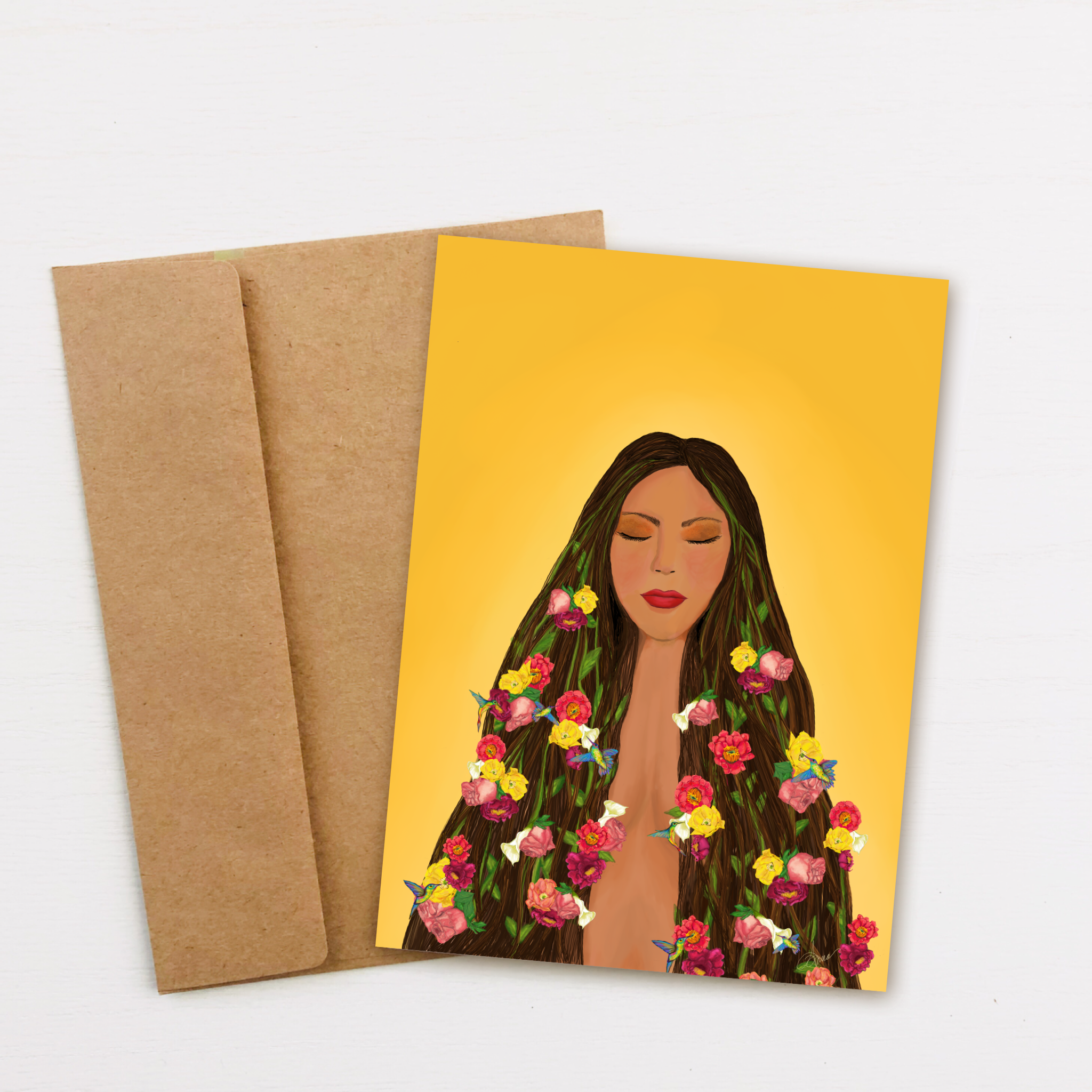 Ces cartes de vœux présentent des impressions des collages techniques mixtes originaux et des peintures d'illustration de Dafri. Imprimé sur du papier cartonné 100 lb Format A7 5 « X7" Intérieur vierge Livré avec une enveloppe Kraft olive