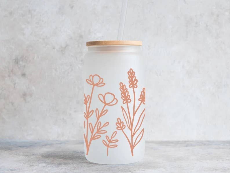 Savourez avec style notre verre à café glacé papillon de printemps ! Ce verre arbore un charmant design de papillon et de fleurs qui ajoute une touche de fantaisie à votre routine matinale. Parfait pour contenir votre boisson préférée, ce verre est sûr d'égayer votre journée ! INCLUS : Verre de 16 oz avec décalcomanie DTF + couvercle et paille (carte d'entretien incluse avec chaque verre) REMARQUE : Toutes les commandes de verres à café glacé incluront un mélange de pailles "courbées" et "droites". INSTRUCTIONS D'ENTRETIEN : Laver à la main uniquement Ne passe pas au lave-vaisselle Ne pas tremper Ne passe pas au micro-ondes