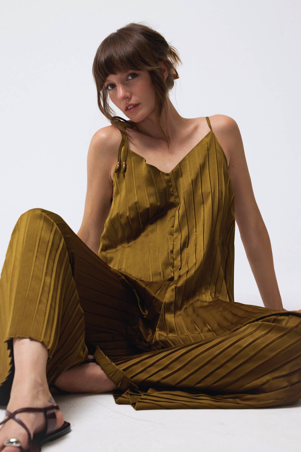 Robe mi-longue à camisole plissée
