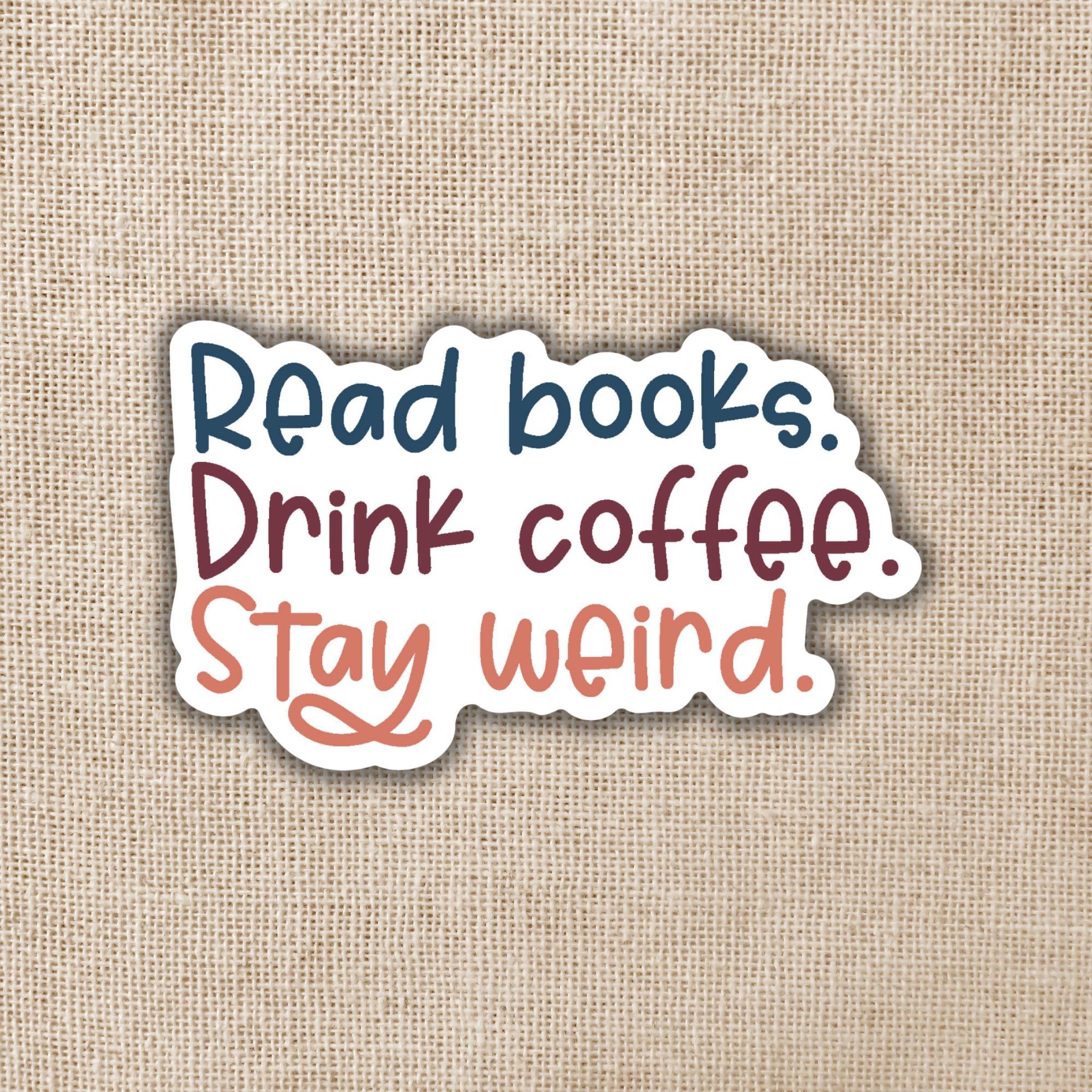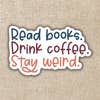 Lisez des livres. Buvez du café. Reste bizarre. Qu'y a-t-il d'autre ? * Détails de l'autocollant * - Autocollant de 3 x 1,8 pouces - Autocollants imprimés en vinyle : application rapide et facile sans bulles - Imperméable et résistant aux intempéries : passe au lave-vaisselle, peut être placé sur les voitures et les bouteilles d'eau - S'enlève avec peu ou pas de résidus, tout résidu peut être facilement éliminé avec un désinfectant pour les mains ou de l'alcool à friction * Options d'emballage * - Les autocollants peuvent être emballés en vrac ou individuellement (avec ou sans étiquette volante) - Les préférences d'emballage sont confirmées une fois la commande passée par message. * Expédition * - Le délai de traitement varie de 3 à 10 jours ouvrables pour les commandes de stickers - Les commandes sont laissées dans la boîte aux lettres ou la boîte postale