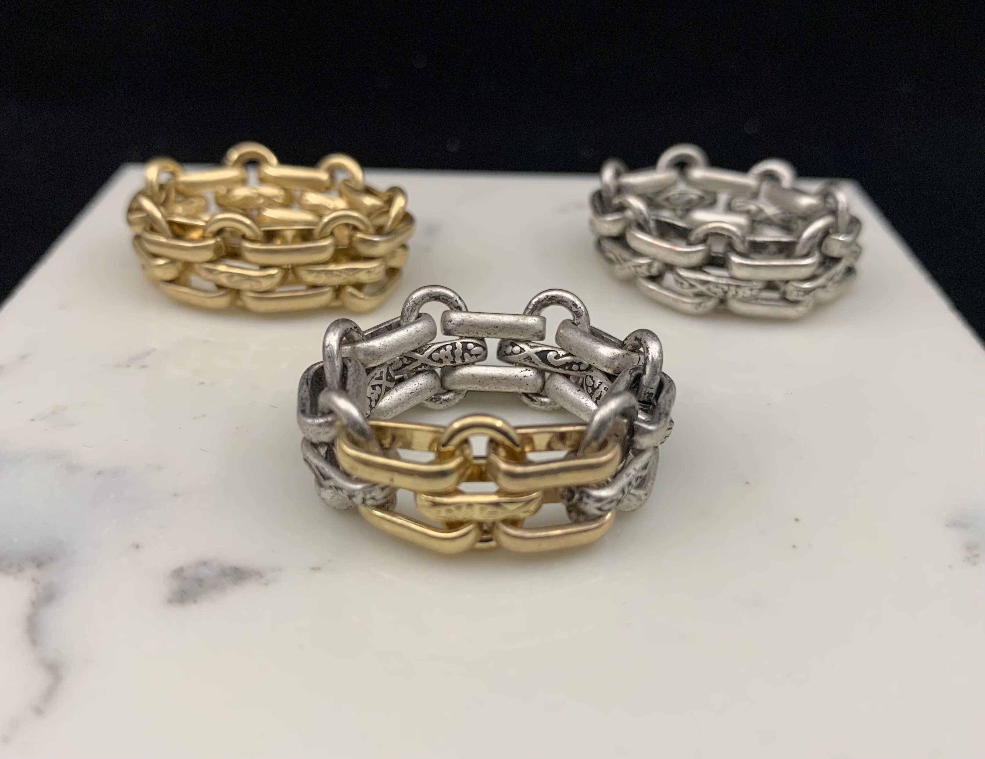 Bracelet en or orné de cœurs Chaîne en bronze sur les deux côtés 7 pouces Fabriqué à la main dans notre studio de Chicago