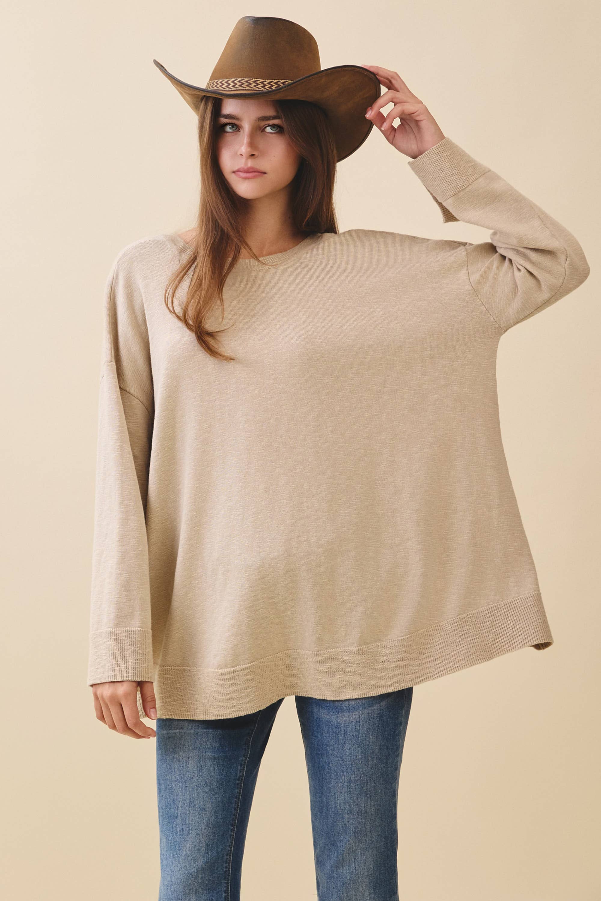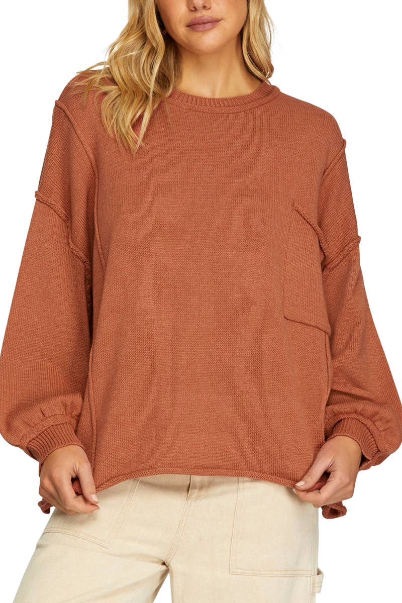 D'une allure décontractée et d'un charme nonchalant, ce pull en maille de couleur camel présente des détails à bords bruts et une poche poitrine ample qui ajoute une touche moderne à une silhouette classique. Confectionné à 100 % en acrylique, il offre une coupe confortable et respirante, parfaite pour les superpositions de mi-saison. Les manches larges et la couture d'épaule tombante décontractée renforcent le confort surdimensionné, tandis que le dos asymétrique ajoute une forme subtile vue de derrière. Portez-le rentré dans un jean ou jeté sur des leggings pour un look quotidien décontracté et raffiné.
