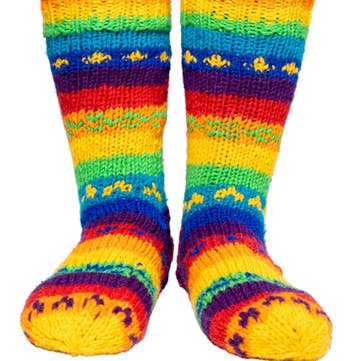 « Les chaussettes Cosmos sont mon endroit idéal ! Pour moi, ces chaussettes reflètent l'énergie et le dynamisme que je ressens dans la vie de tous les jours. Contrairement à certains de mes autres modèles, qui peuvent être inspirés par le calme et la sérénité, les chaussettes Cosmos sont destinées à la fête. Les teintes audacieuses d'orange, de rouge, de turquoise, de vert citron et de violet se combinent pour créer un design résolument lumineux et joyeux. » - Lisa, l'artiste. Comme un cornet de sorbet aromatisé aux baies par une chaude journée, ces chaussettes feront sourire tout le monde. Couleurs de cette chaussette : violet, vert citron, rouge, orange, turquoise. Les chaussettes douillettes sont une fois de plus à l'honneur ! Cette année, le confort est essentiel, et les clientes recherchent des chaussettes qui gardent leurs pieds au chaud et ajoutent une touche de style et de personnalité à leurs tenues. Les chaussettes douillettes de différentes couleurs, motifs et textures sont un accessoire populaire, permettant aux clients d'exprimer leur individualité de la tête aux pieds.