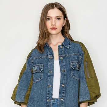 Veste en denim et twill olive au style affirmé