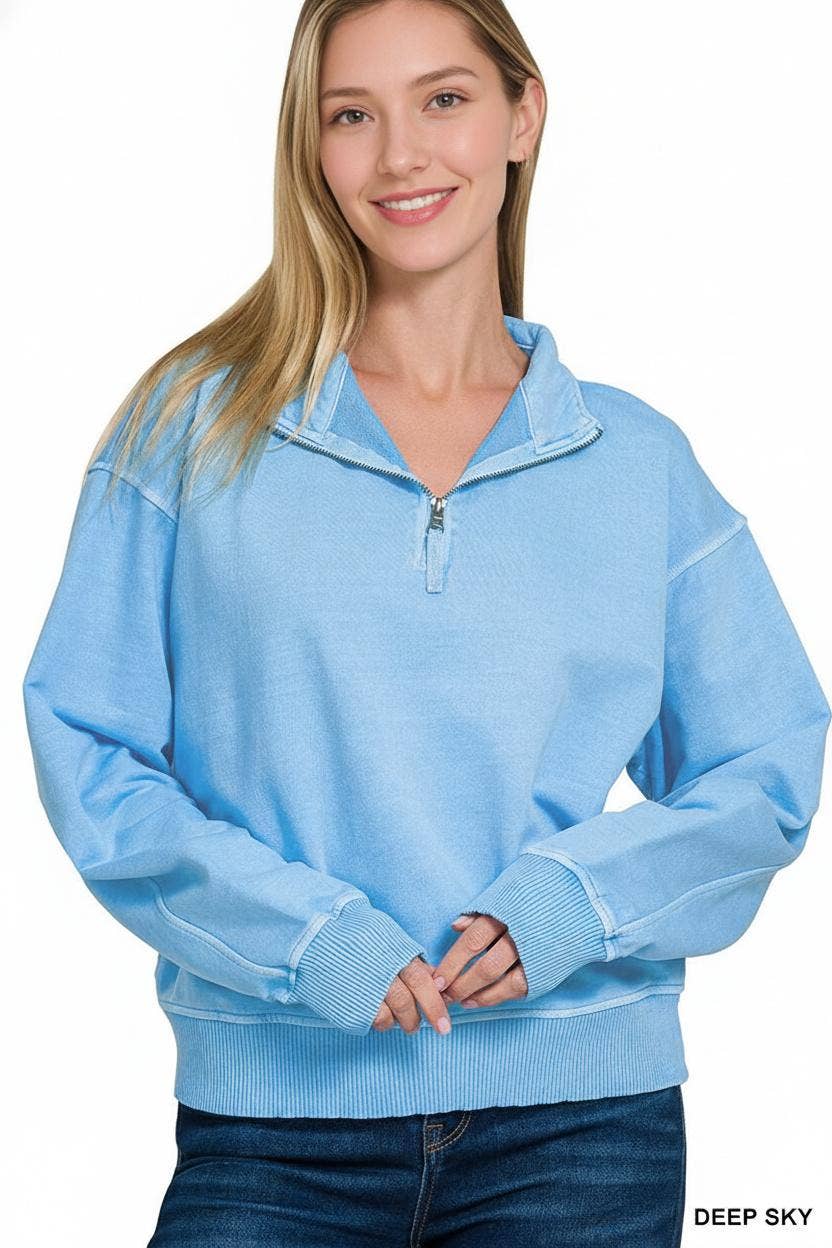 Sweat-shirt en polaire confortable à demi-zip avec col montant * Polaire brossée douillette * Manches longues avec poignets et ourlet à bande - Pré-lavé pour un ajustement fidèle sans rétrécissement. Composition du tissu 60% Coton 40% Polyester Fabriqué en Chine