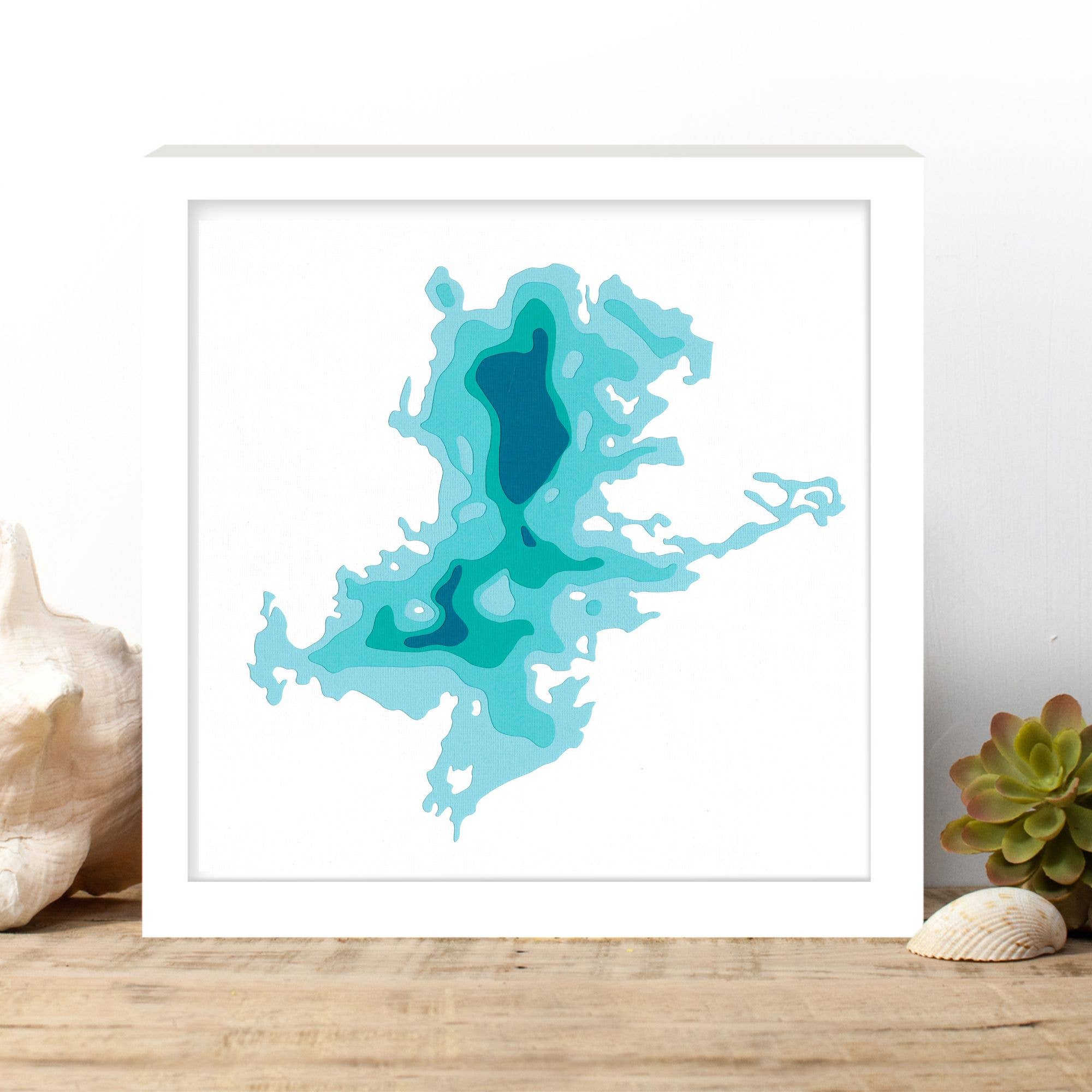 Carte artistique dessinée et illustrée à la main de la plus grande île d'eau douce du monde. Affiche les détails des lacs, des îles et des baies. Superbe dans un cadre ou accroché au mur du chalet avec le pouce. DÉTAILS : 18 x 24 pouces Imprimé sur un beau papier épais. S'adapte à un cadre de taille standard disponible dans les grands magasins d'artisanat