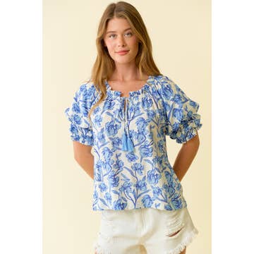 Comme un t-shirt, mais bien plus mignon. Ajoutez un peu de jazz à votre garde-robe avec cette agrafe toute l'année. T-shirt en tricot plissé imprimé floral avec bas à nouer. Détails plissés Attaches à la taille Style pull-over 100 % polyester