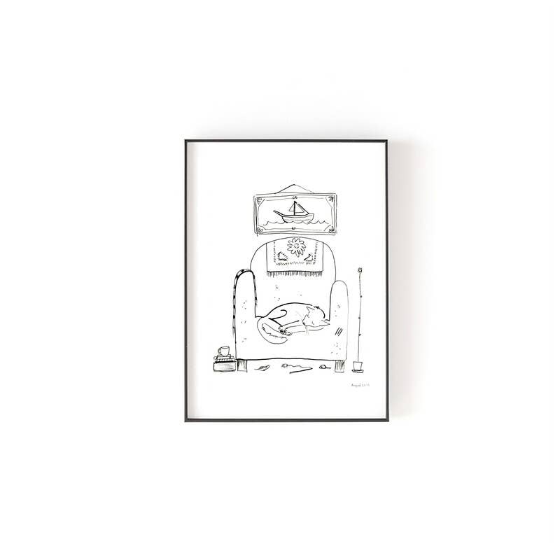 Cette estampe représente un grand chat blanc et gris mangeant des macaronis au fromage avec un os de jambon dans une grande poêle en fonte. •Illustration originale •Imprimé sur du papier d'art épais 5x7 ou 8x10 •Non encadré, impression uniquement •Emballé dans une pochette en violoncelle avec support en aggloméré Remarque : la couleur des images peut légèrement varier en raison des différences de calibrage des couleurs sur les écrans et les imprimantes.