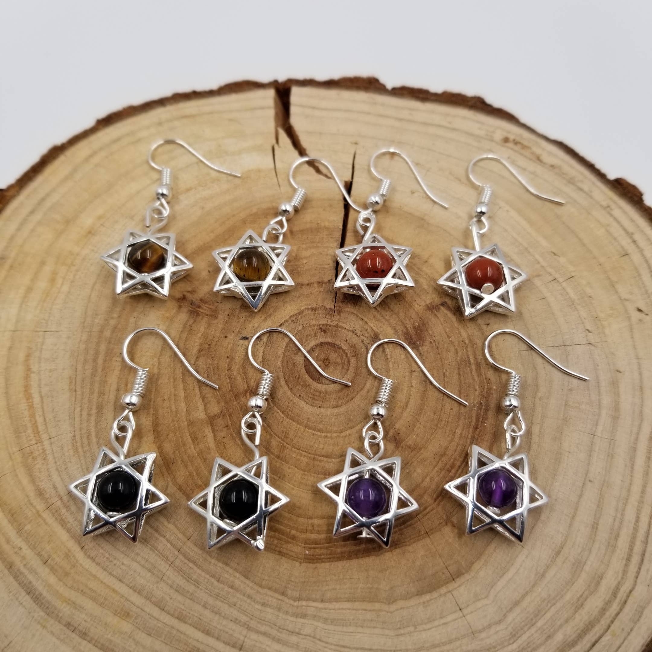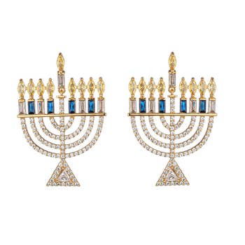 Boucles d'oreilles pendantes bleues représentant l'étoile de David de Hanoukka en vente B2B