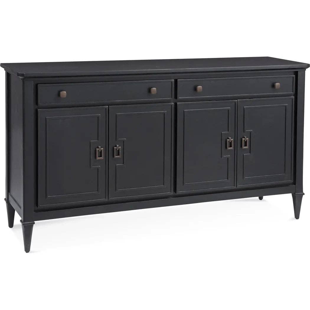 Transformez votre espace avec ce meuble de rangement élégant, doté d'étagères réglables sur 3 niveaux pour une organisation personnalisée. Sa finition noire élégante et ses poignées en bronze vintage ajoutent du caractère, tandis que les portes à fermeture douce assurent une utilisation silencieuse. Ce buffet peut servir de meuble TV chic, de garde-manger pratique ou de table d'entrée élégante. Avec une surface imperméable et facile à nettoyer, il est parfait pour les amateurs de bricolage souhaitant personnaliser son apparence—que vous souhaitiez ajouter des pochoirs, de la peinture ou des accessoires uniques, les possibilités sont infinies. Créez un environnement chaleureux tout en mettant en valeur votre style personnel avec cette belle pièce d'accent ! Spécification : Nom du produit : Meuble de rangement à 4 portes Couleur : Noir Matériau : MDF de grade P2 Dimensions totales : 60" x 15,75" x 32" Capacité de poids du plateau : 200 lbs Capacité de poids des étagères réglables : 50 lbs