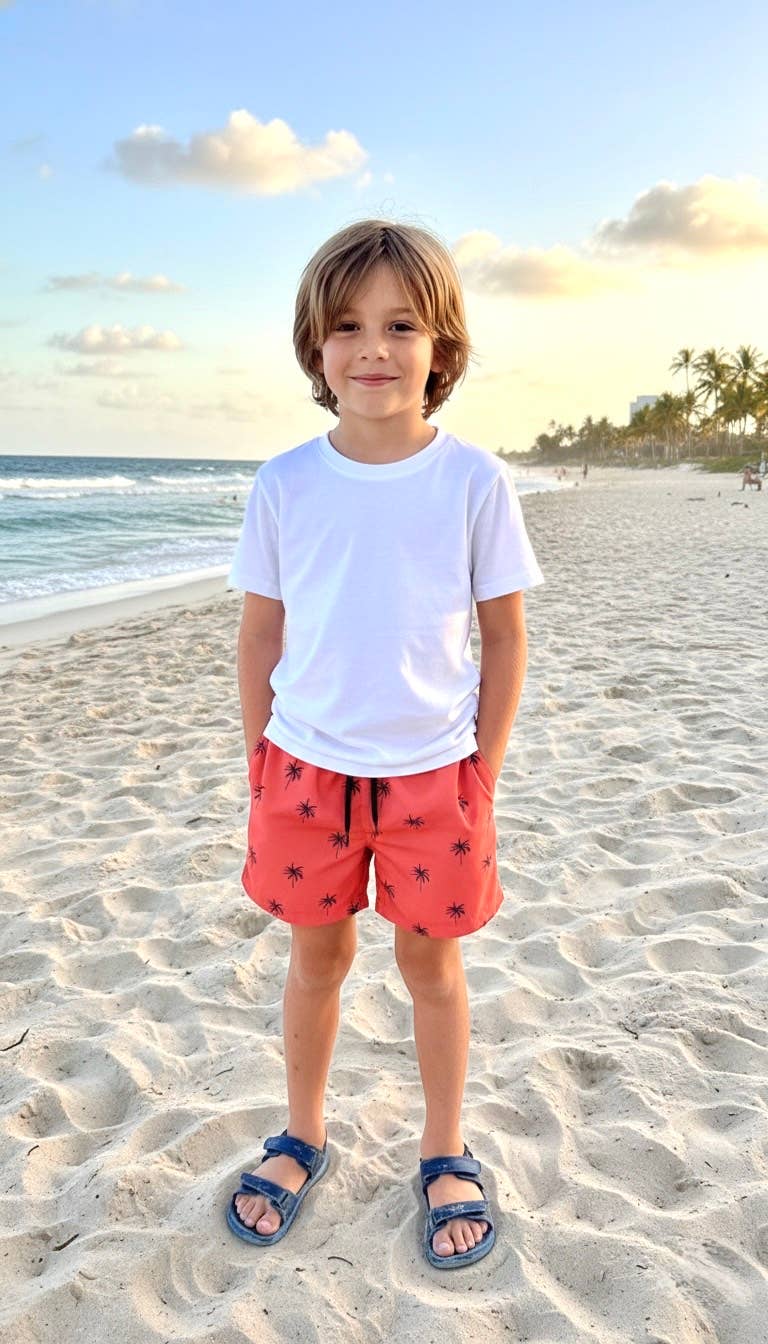 Complétez la tenue de bain estivale de votre garçon avec ce maillot de bain. Avec sa doublure en maille intérieure et ses cordons de serrage réglables à l'intérieur, non seulement il aura fière allure, mais il se sentira bien aussi. Fabriqué avec un tissu de protection solaire UPF 50+ pour une protection et un confort tout au long de la journée. Les oranges vives et les fleurs sucrées se détachent sur un magnifique fond rose dans cet imprimé fruité à succès. Se marie bien avec le rose, le blanc, le rose chewing-gum. Instructions d'entretien : Laver en machine à froid avec des couleurs similaires ; ne pas utiliser de javel ; ne pas repasser ; sécher à l'ombre Composition du tissu : 100 % polyester Code de référence : B886