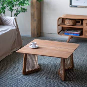 Table basse de rangement à étagères ouvertes à 2 niveaux en rotin en vente B2B