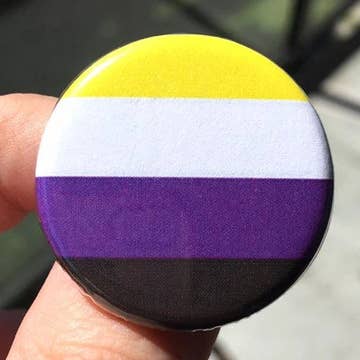 J'ai plusieurs seaux de boutons de Schlady dans ma boutique et ils sont très appréciés par la foule. Il y a beaucoup d'étudiants avec quelques dollars qui peuvent encore obtenir un bouton amusant, utile ou amusant et utile. Je pourrais parler des boutons de pronoms et de genre, alors je vais le faire. Les boutons "Pas un garçon/fille !" en particulier. Un bouton existe pour les panromantiques asexuels ! Je suis comiquement mal genré dans ma propre boutique et je me contente de montrer mon bouton "Iel" ou "Iel/Elle" (OUI, il y a "Iel/Elle" ET "Elle/Iel"). Parfait.