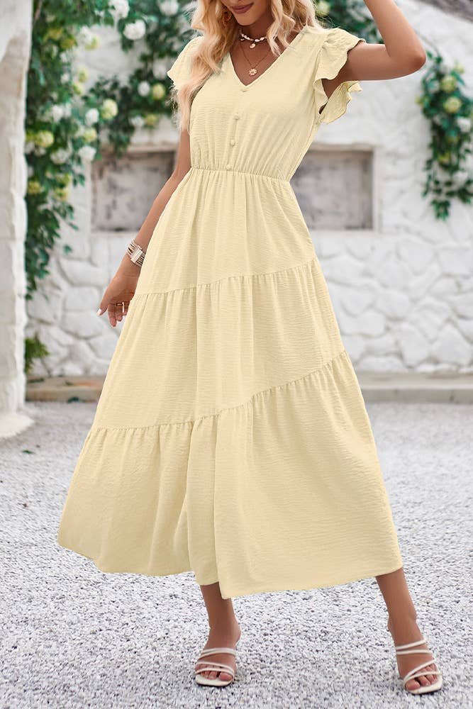 Pays de fabrication : Italie Couleur : Jaune Encolure : Encolure en V Instructions d'entretien : Lavage en machine Longueur de jupe et de robe : Midi Longueur des manches : Manches 3/4 Motif : Uni Occasion spéciale : Quotidien Saison : Printemps/Été Silhouette : Ado et Curvy Style de robe : Coupe cintrée et évasée Style : Bohème Tissu : coton Langue du produit : Anglais
