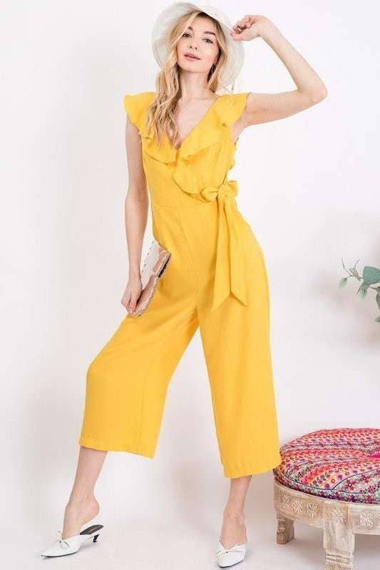 Combinaison en denim citron à jambes larges et bustier sans bretelles 4406 en vente B2B