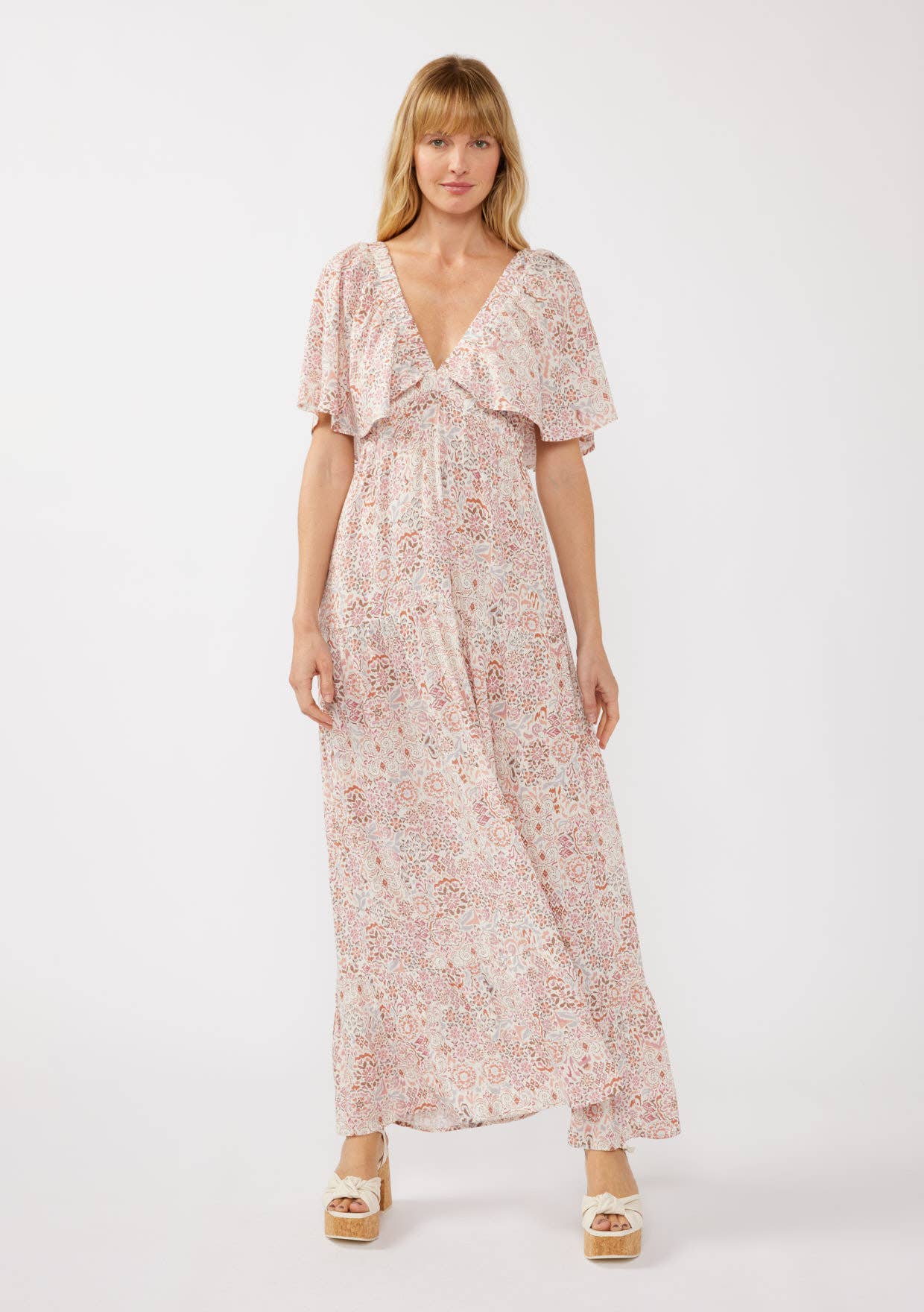 Robe Maxi à Imprimé Bordure Damassée Col V HD3034-VERT