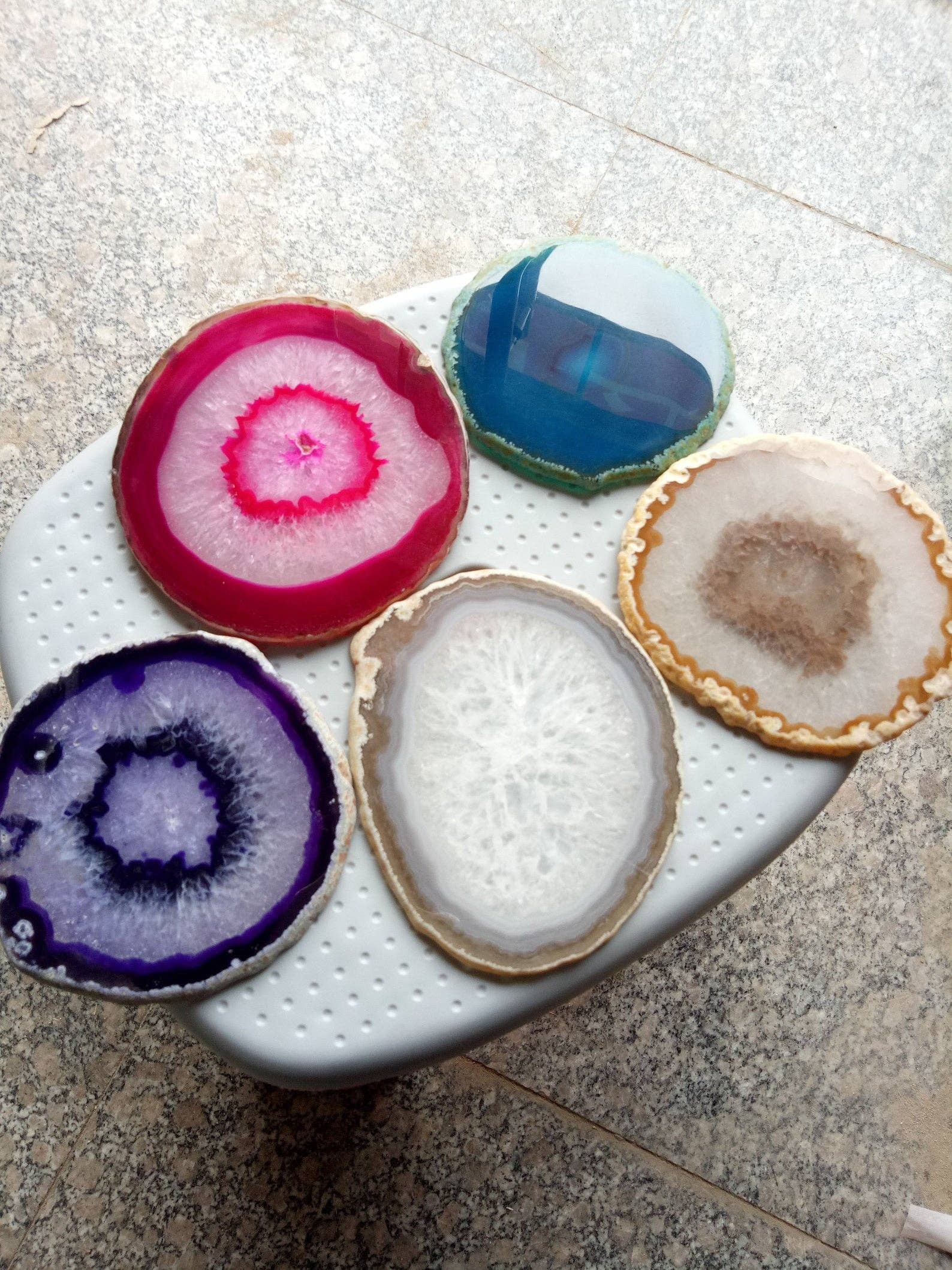 Dessous de verre en cristal de géode d'agate naturelle 3,5-4" Lot de 4 en vente B2B