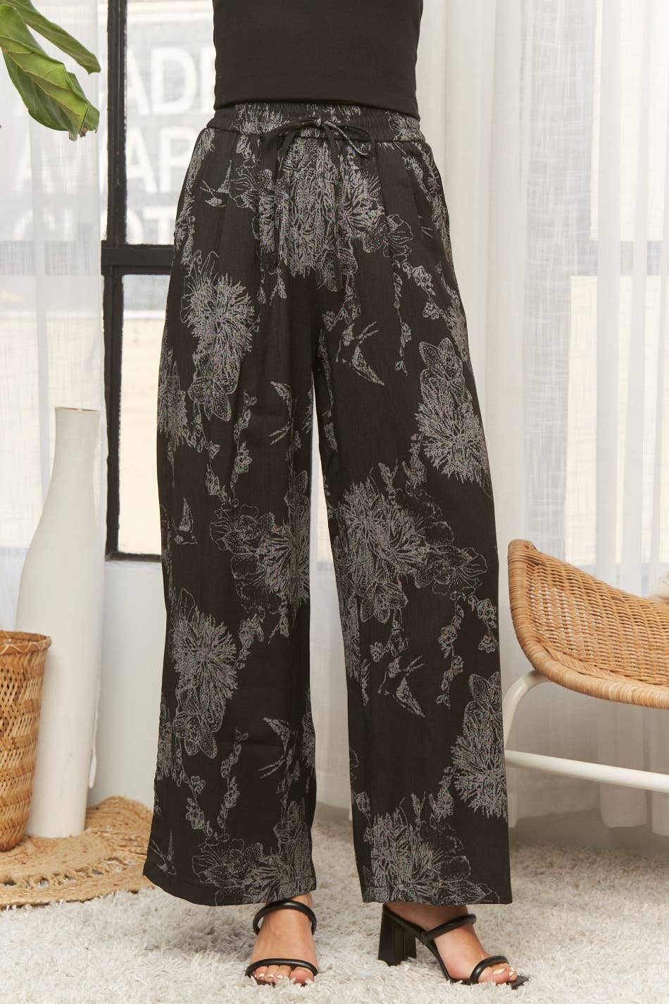 Pantalon à Jambe Large Taille Haute à Motif Floral ZK2491 en vente B2B