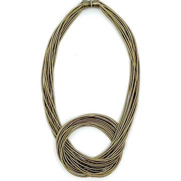 La magnifique perle focale en cuivre émaillé fabriquée à la main contient un aimant caché, ce qui rend ce collier si facile à mettre et à enlever. Les multiples brins de cuir dans des tons de marron et de noir créent un effet drapé doux. Tailles : 16 pouces, 17 pouces (encolure), 18 pouces de long et 20 pouces de long.