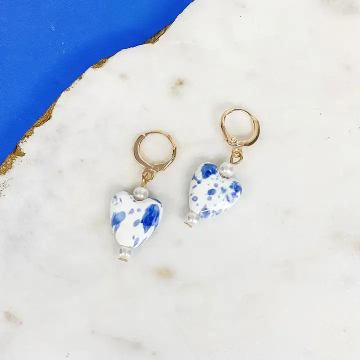 Boucles d'oreilles cœur floral, boucles d'oreilles cœur orange, cœurs bleus en vente B2B