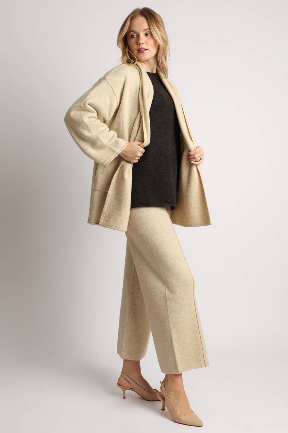 Ce cardigan en maille torsadée raffiné présente un col classique et une silhouette allongeante mi-cuisse pour une élégance intemporelle. Confectionné dans un mélange de Modal respirant, il offre une chaleur sophistiquée tout en conservant une sensation de légèreté—parfait pour superposer sans encombrement excessif. Matériau : Fil italien de la plus haute qualité 46% Modal, 40% Polyacrylique, 14% Polyamide Tailles : XS —XL Entretien : Nettoyage à sec ou lavage à la main à l'eau froide avec un détergent doux et séchage à plat dans sa forme d'origine.
