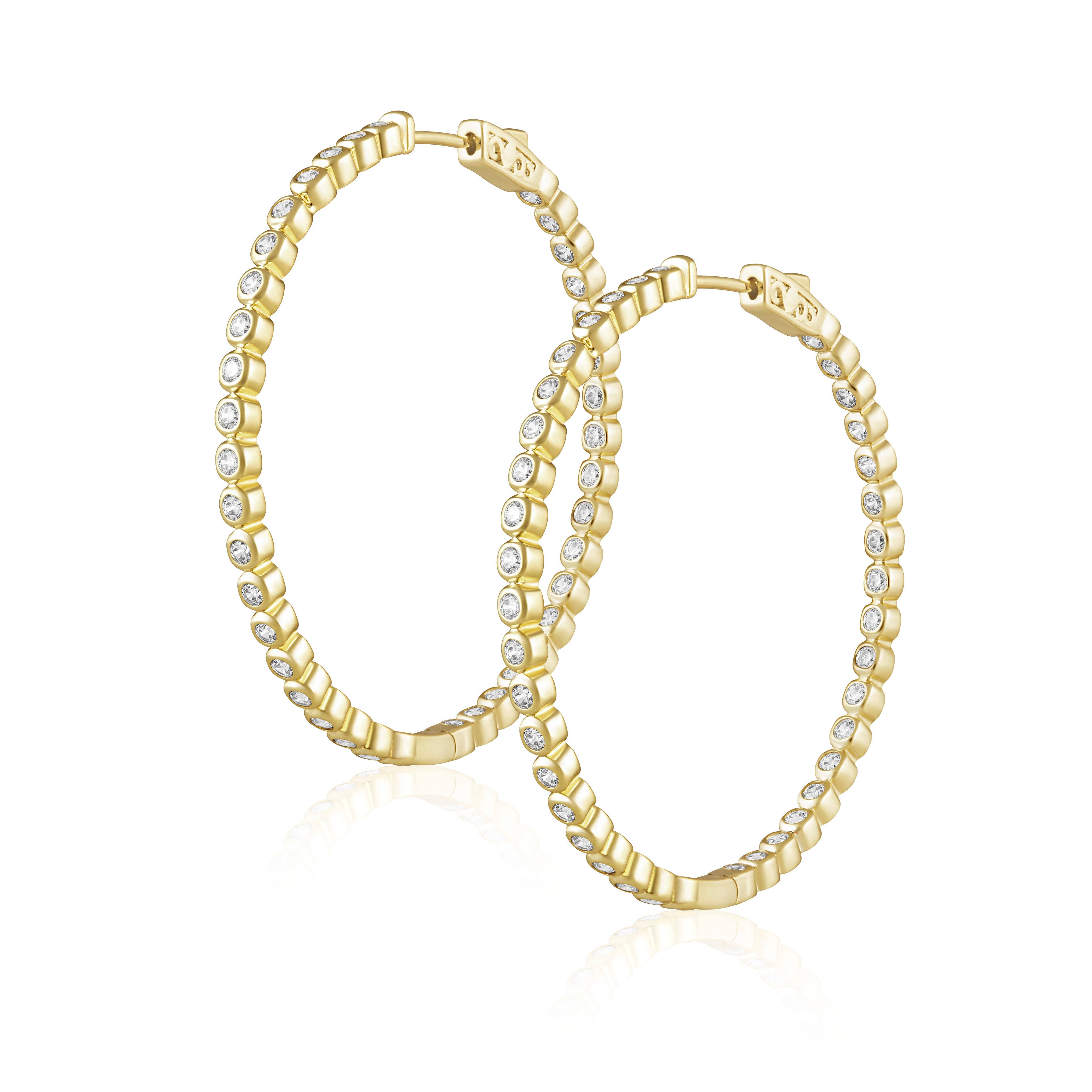 Illuminez toute la nuit avec la créole Lyra CZ, composée d'une créole en or 14 carats savamment confectionnée avec des pierres CZ. Ce bijou est la quantité parfaite d'éclat et d'éclat pour toutes les occasions. * Cerceau 2 » * Plaqué 14 carats sur argent sterling * Pierres CZ * Résistant à l'eau et au ternissement
