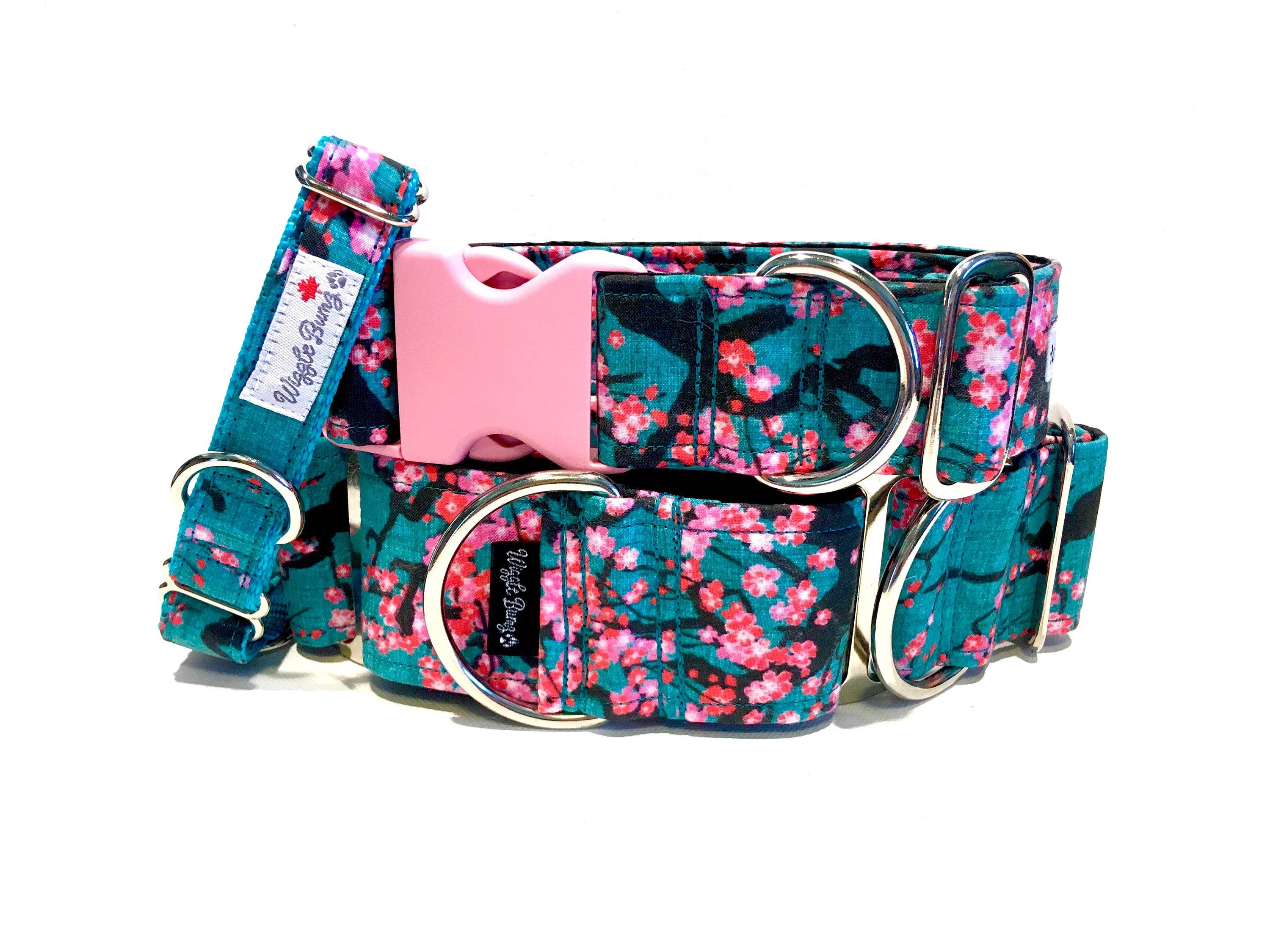 Le collier a un noyau en sangle 100 % nylon entouré d'un tissu en coton renforcé avec une doublure pour améliorer la résistance. Les colliers sont fabriqués avec environ 6 à 10 pouces de réglage (circonférence). Mesurer votre chien : Collier Martingale : Assurez-vous de mesurer la circonférence de la tête de votre chien à la partie la plus large. Collier à clip : Assurez-vous de mesurer la circonférence du cou de votre chien. Tableau des tailles de longueur (basé sur la tête/le cou de votre chien) XS : 6-10 po Petit : 8-14 po Moyen : 12-18 po Grand : 16-22 po XL : 20-26 po Tableau des tailles de largeur Petit / Moyen : 1,0 po Grand : 1,5 po XL : 2,0 po Veuillez prévoir des variations par rapport aux photos car deux colliers ne sont jamais exactement identiques. Le placement du motif du tissu peut varier. Instructions d'entretien : Veuillez laver les colliers avec des couleurs similaires et les suspendre pour sécher. Ne pas repasser. Ne pas utiliser d'eau de Javel. Ne pas mettre au sèche-linge.