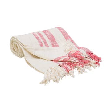 Couverture en mousseline de coton biologique XL - pompons roses poussiéreux en vente B2B