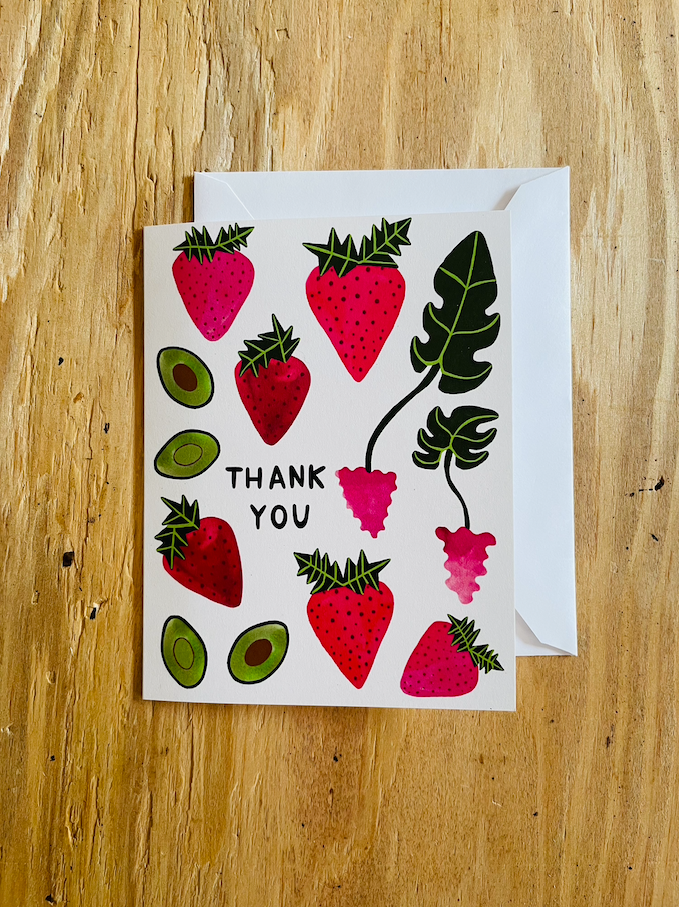 Carte et enveloppe format A2 (4,25 x 5,5") Carte pliée, intérieur vierge Imprimé en couleur sur carton crème 110lb Conçu et imprimé aux États-Unis