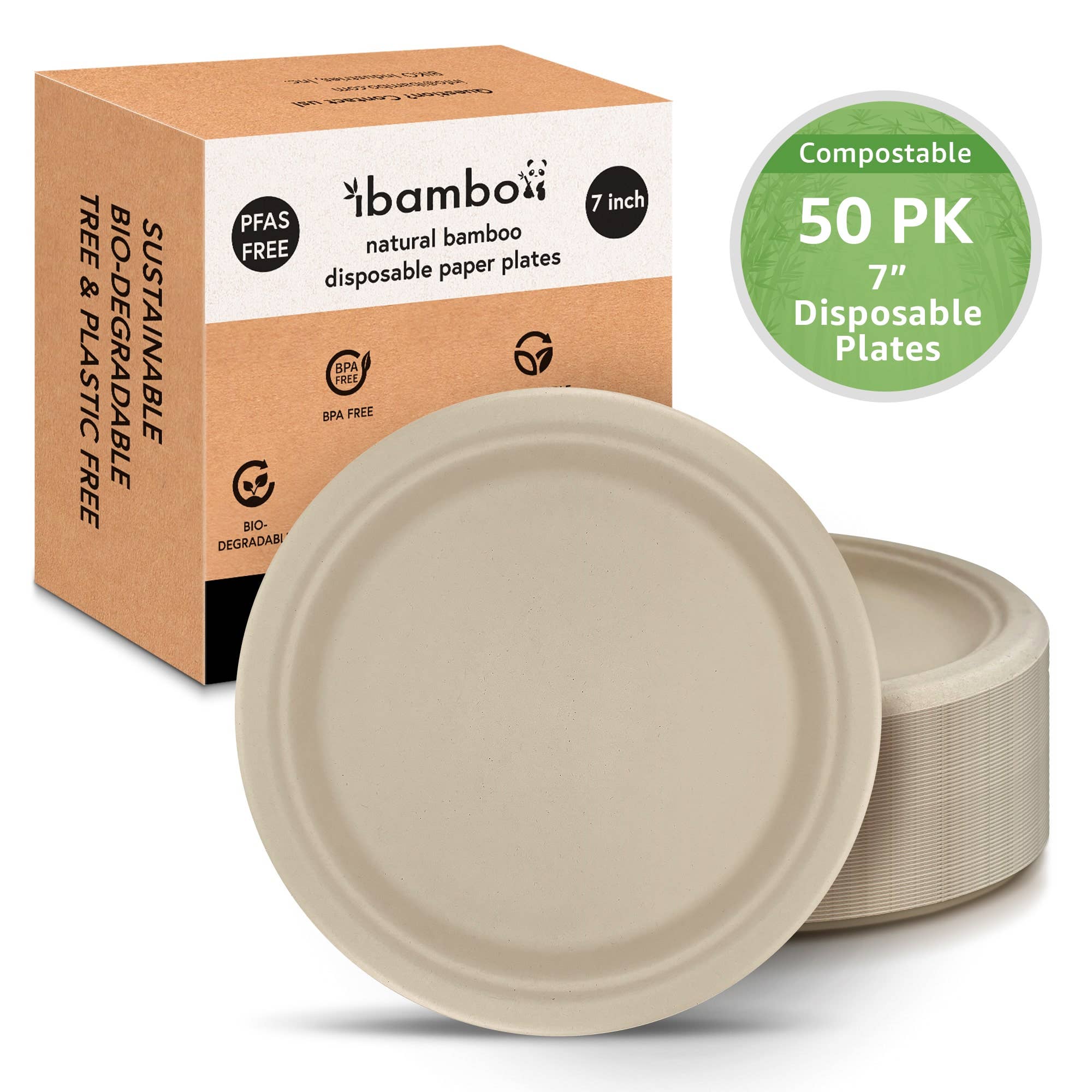 Les assiettes en carton jetables en bambou de 9 pouces d'Ibambo sont une alternative écologique aux assiettes en plastique et en carton traditionnelles dans un emballage sans plastique. Idéal pour un usage personnel ou commercial dans les restaurants ou lors de grands rassemblements. ASSIETTES À COMPARTIMENTS ÉCOLOGIQUES DE 9 POUCES : Paquet de 50 de notre mélange signature de bambou et de bagasse, sans PFAS. Résistant au micro-ondes : nos assiettes passent au micro-ondes, passent au congélateur et résistent à l'eau et à l'huile. Durable et robuste : la construction en bambou et bagasse garantit que les plaques ne se plieront pas et ne s'effondreront pas. UTILISATION POLYVALENTE : Parfait pour les rassemblements, les pique-niques, le camping ou pour un usage quotidien. Idéal pour les entrées, les desserts et les salades. COMPOSTABLES ET BIODÉGRADABLES : Les assiettes Ibambo sont parfaites pour les particuliers et les entreprises à la recherche de solutions durables. ENSEMBLE, NOUS SOMMES FSC® - En choisissant ce produit, vous soutenez la gestion responsable des forêts du monde entier. Le FSC® aide à prendre soin des forêts ainsi que des personnes et de la faune qui y vivent. Ibambo est certifié FSC®, FSC® C174643.