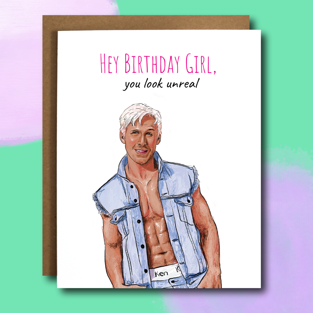 Carte d'anniversaire Barbie Movie I Ken-Not Believe It's Your Birthday Taille : A2 - 4,25 pouces x 5,5 pouces « Je ne peux pas croire que c'est ton anniversaire ! » - Imprimé sur du papier de couverture blanc mat de qualité supérieure de 100 lb - Espace intérieur vide pour un message personnel - Enveloppe autocollante en kraft brun à décoller et à presser incluse - Emballé dans des pochettes transparentes recyclables individuelles