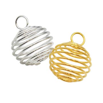 Code produit : TSA12 Ces petits pendentifs en forme de « cage » très pratiques permettent de garder vos pierres ou objets précieux à portée de main. Ils sont parfaits pour créer votre propre pendentif ! Ils sont fabriqués en laiton flexible avec placage de cuivre, d'or ou d'argent et vendus en lots de 12 pièces. L'assortiment comprend 2 modèles pour chacun des 6 modèles, selon les stocks disponibles. Des substitutions peuvent être effectuées pour compléter l'assortiment. Environ 1 pouce chacun.