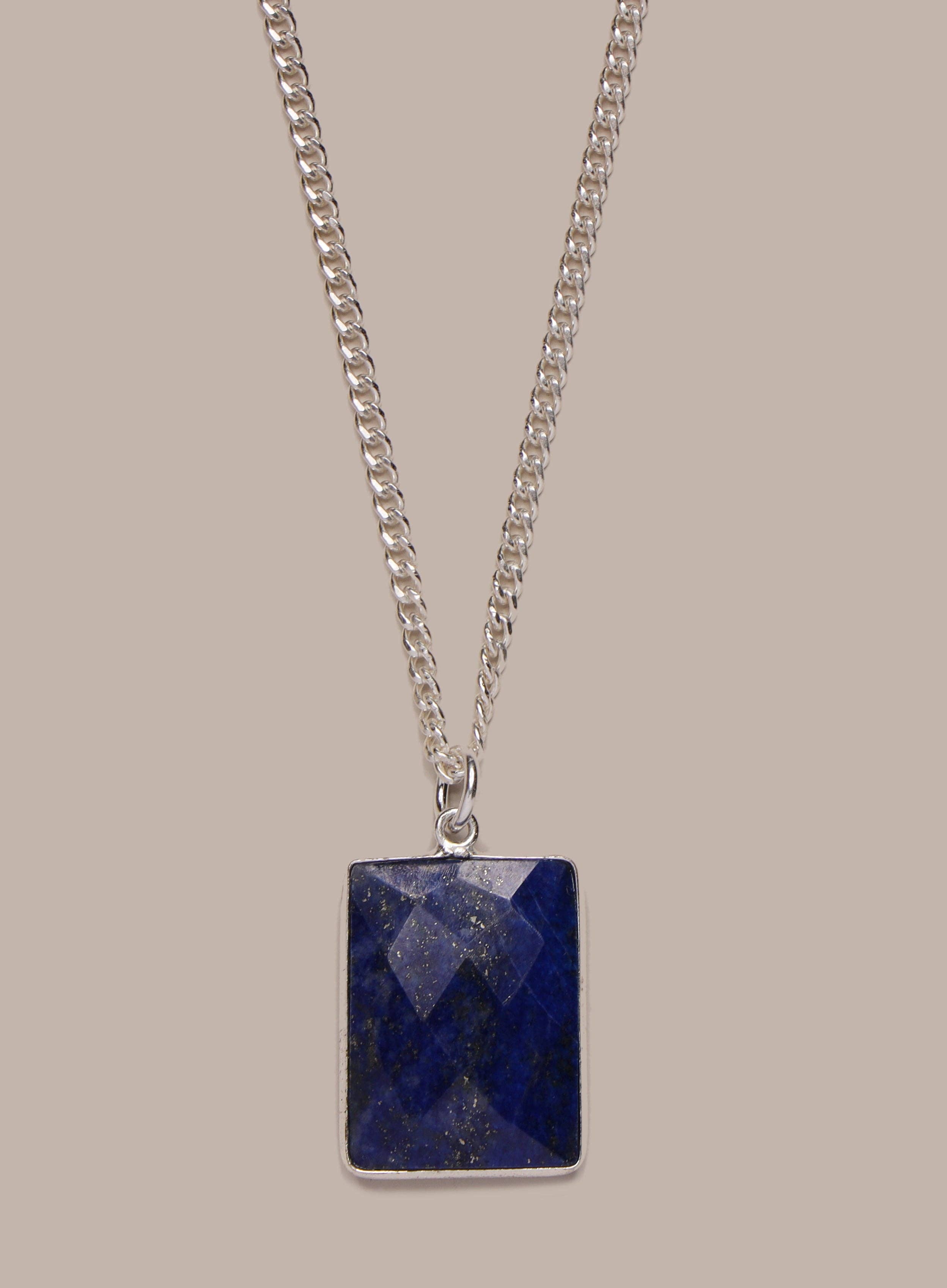 Ce cristal Lapis Lazuli mesure environ 1,6 pouces. Le paquet comprend un pendentif et une chaîne avec la longueur choisie. La chaîne est en acier inoxydable résistant de 1,9 mm. La bague n'a pas de moyen d'ouvrir, la chaîne est donc 100% à la force humaine, mais n'est pas garantie avec la chaîne allongée et le fermoir mousqueton.
