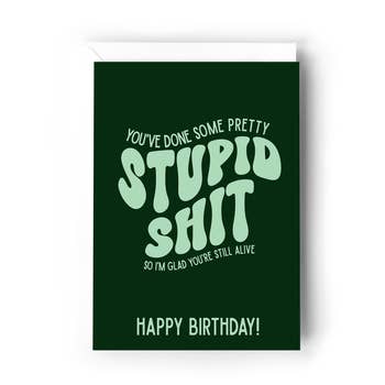 • Quand vous tenez assez à quelqu'un pour dire la vérité. • Cartes de vœux honnêtes et pertinentes pour les amis proches avec qui vous pouvez être honnête. • 5" x 7" avec message imprimé à l'intérieur • Enveloppe verte personnalisée avec logo Bald Guy + blague cachée • Papier cartonné mat recyclé de 130 lb (recyclé) • Fabriqué aux États-Unis