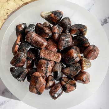 Miriam (« pierre de calligraphie ») | Tumblée | 15-25 mm | 1 livre | Inde Environ 90 à 100 pièces par sac de 1 livre MIRIAM STONE (alias CALLIGRAPHY STONE) rappel de la vie passée, nourrissant, rajeunissant, sagesse, transformation PROPRIÉTÉS : La pierre Miriam (également connue sous le nom de pierre de calligraphie, de jaspe en peau d'éléphant et de pierre arabe) est un minéral unique composé de coquillages fossilisés, d'os et de végétation provenant d'un ancien marécage. Cette pierre complexe est le résultat du déplacement des montagnes de l'Himalaya et de la formation du paysage que nous voyons aujourd'hui. Pendant ce temps, toute la région a été soumise à une pression extrême, les conditions étant suffisamment mûres pour fossiliser et condenser tout ce qui entoure cette chaîne de montagnes nouvellement formée. À mesure que l'on commence à canaliser cette ancienne énergie dans tout son corps, une sensation calmante et apaisante commence à circuler.