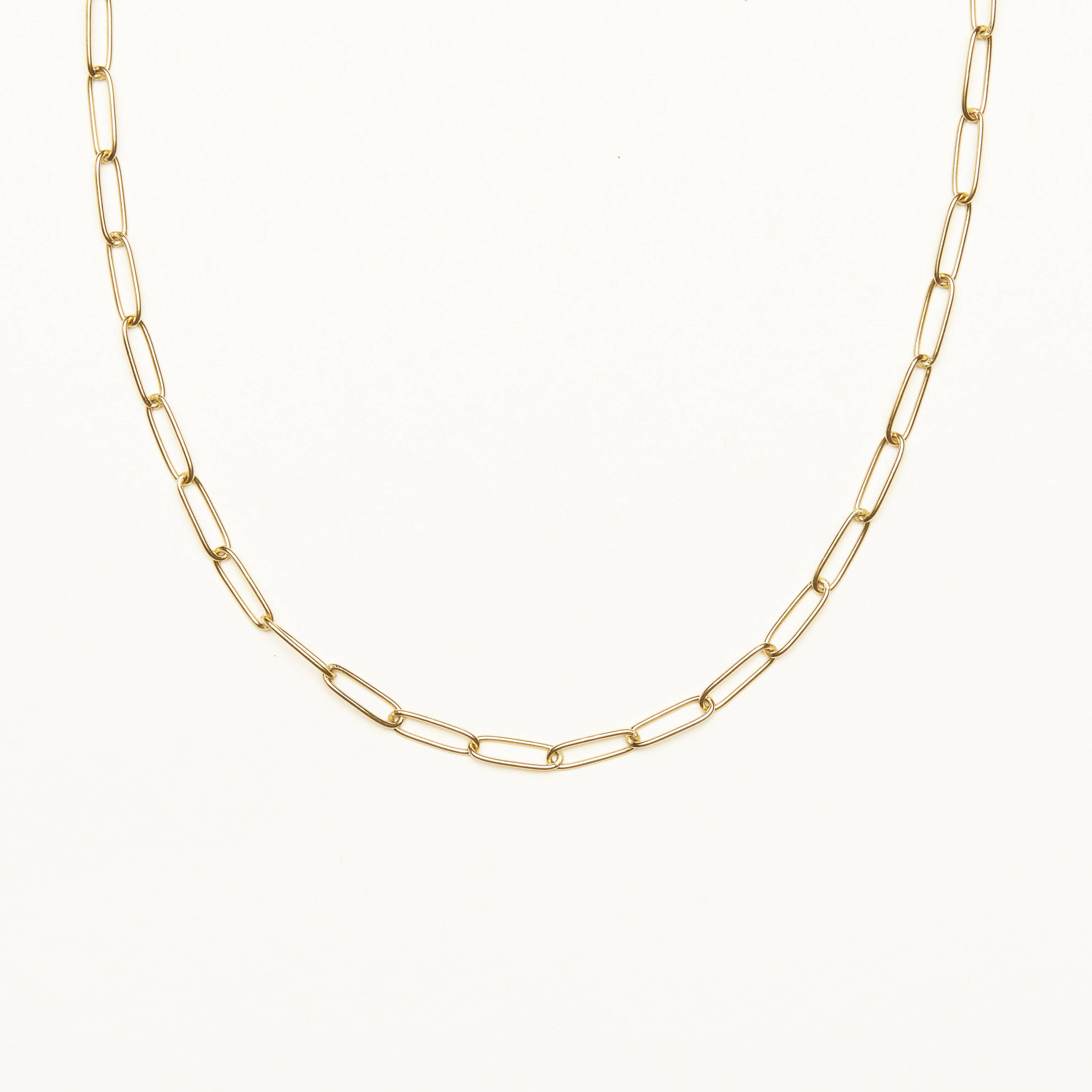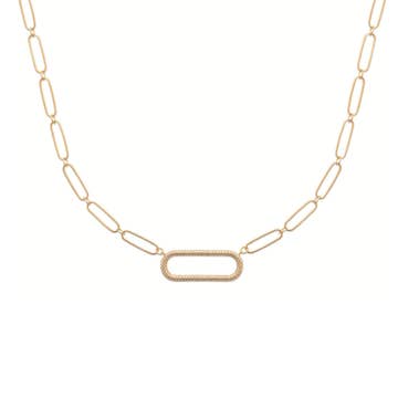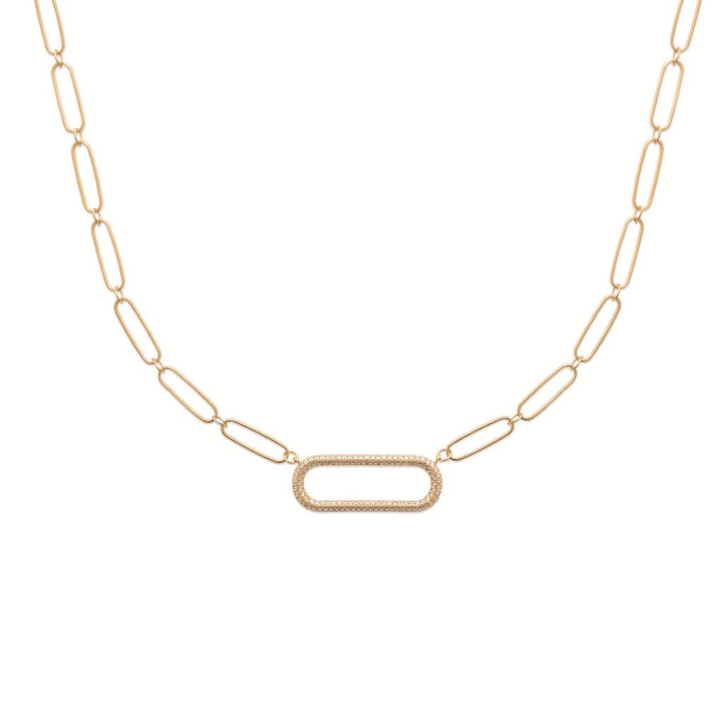 Collier chaîne en trombone avec fermoir cœur pavé. Disponible en or, argent ou or rose. Mesure environ 16" et s'associe parfaitement avec n'importe quel charme Love, Lisa. Doté de nos fermoirs signature conçus pour un échange de charmes facile et sans outils.