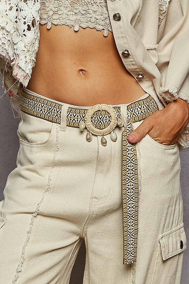 Ceinture ajustable en tissu à motif papillon brodé